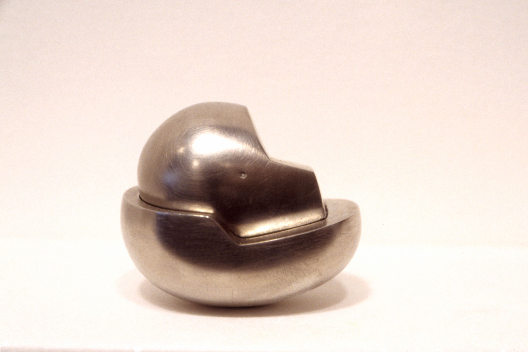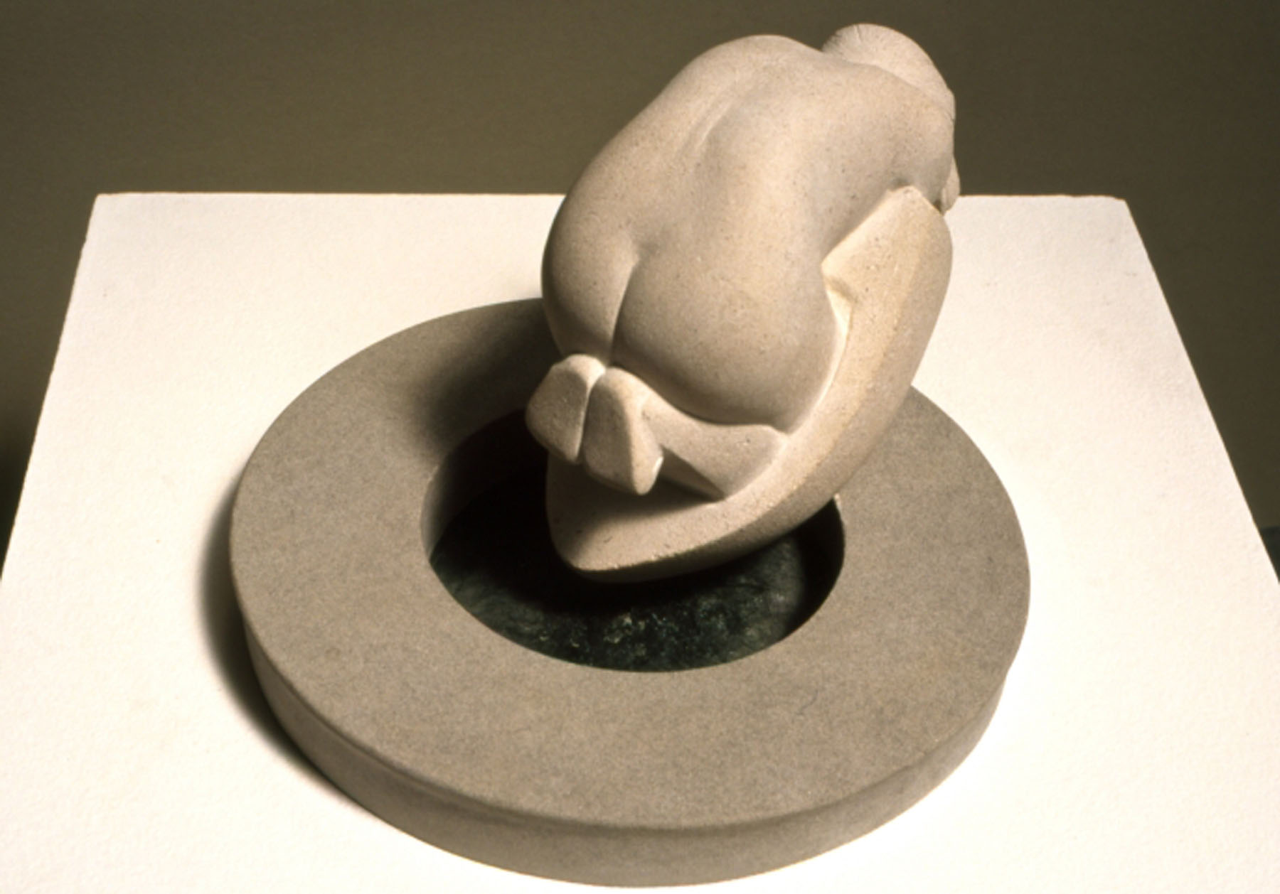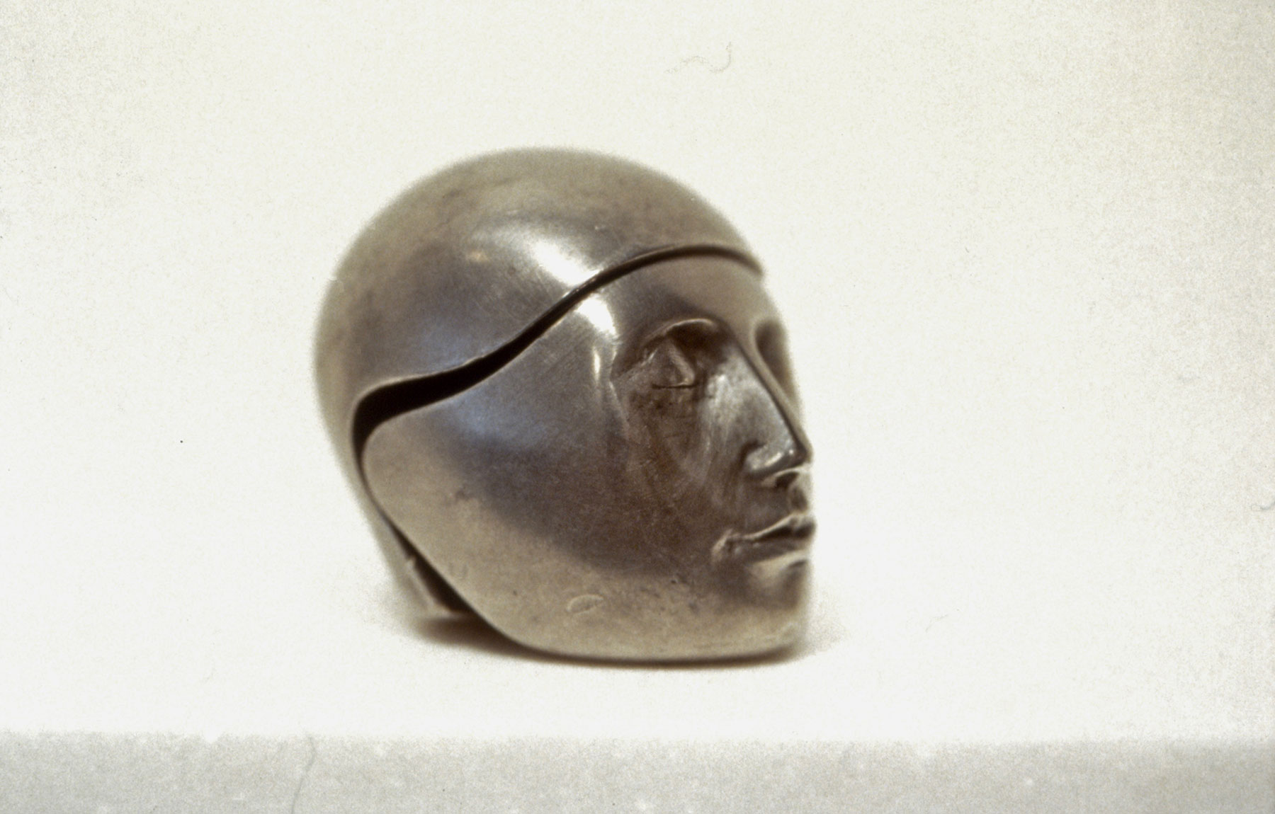 Instead of depicting a complete body, Wallace chooses to show us only the head – the individual in microcosm. It is a theme he investigates further in crisply carved Portland stone, or in cast and polished pewter. Wallace varies his imagery from the more obviously naturalistic to the more abstract and helmet-like.