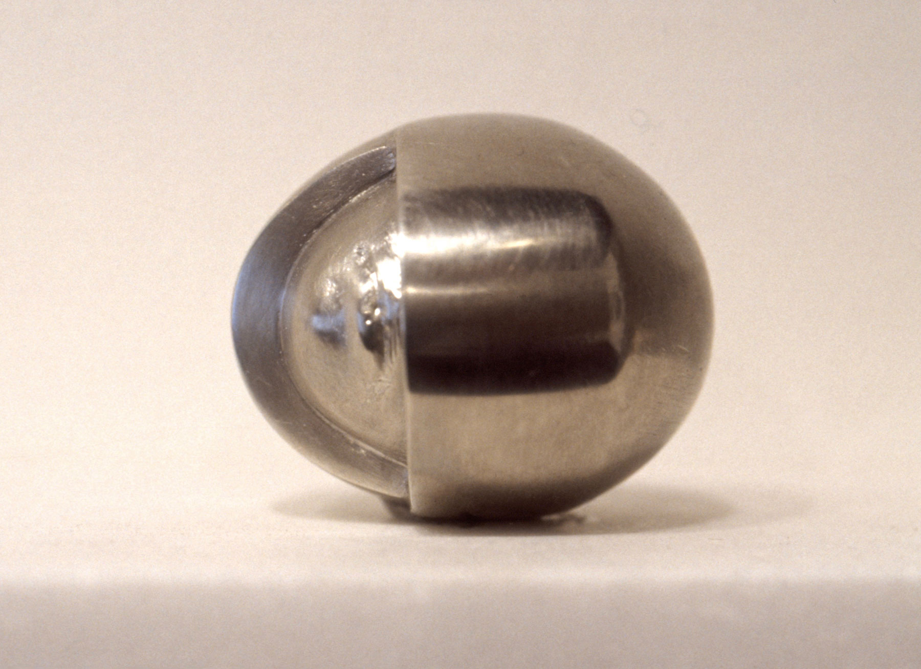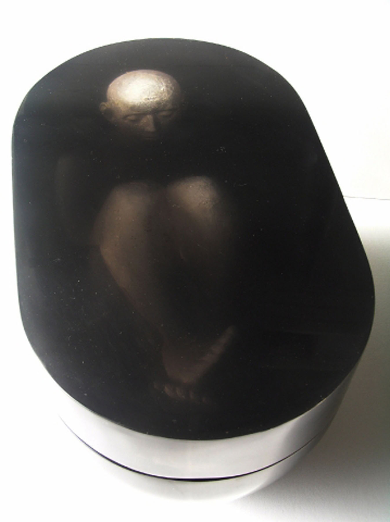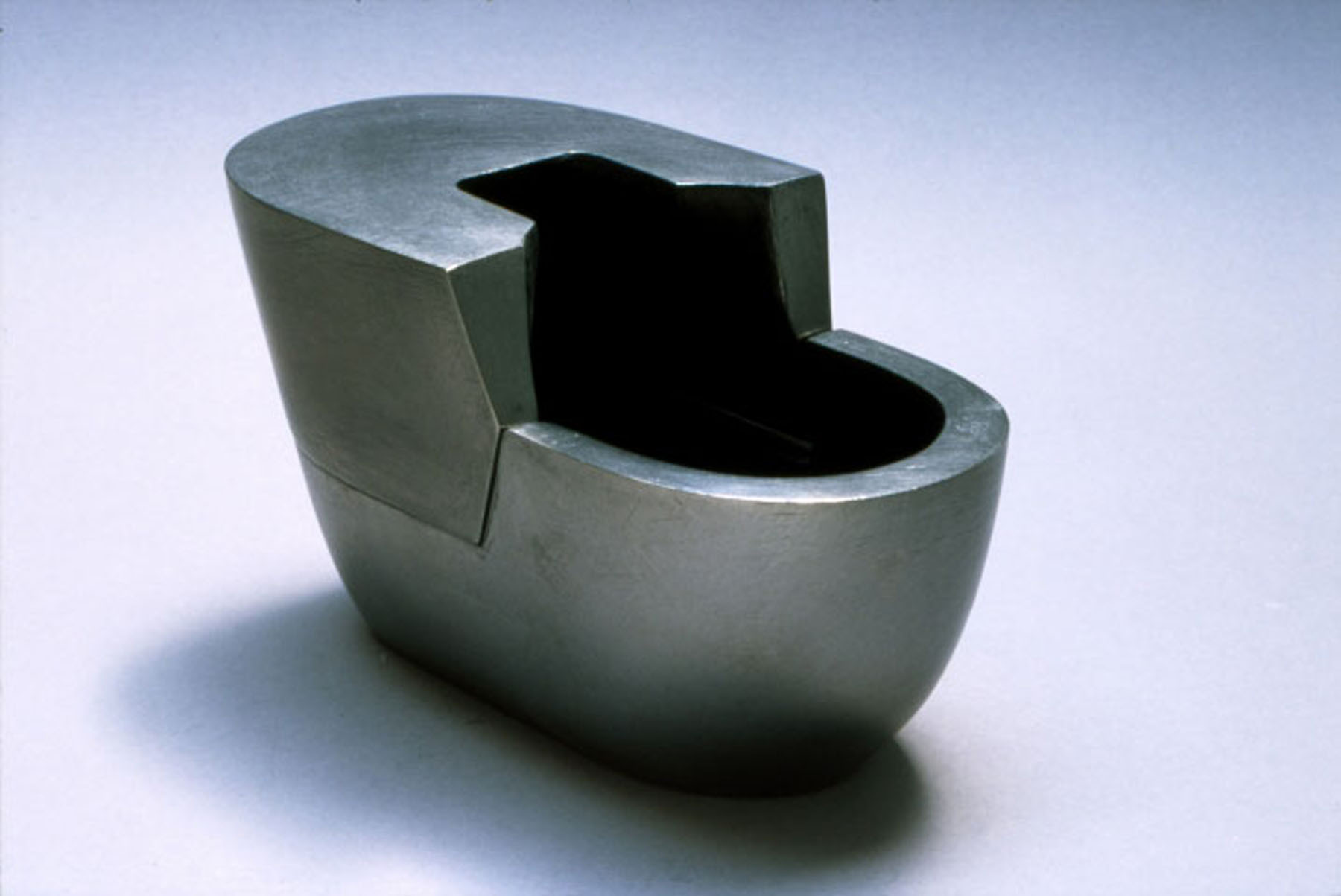 Instead of depicting a complete body, Wallace chooses to show us only the head – the individual in microcosm. It is a theme he investigates further in crisply carved Portland stone, or in cast and polished pewter. Wallace varies his imagery from the more obviously naturalistic to the more abstract and helmet-like.