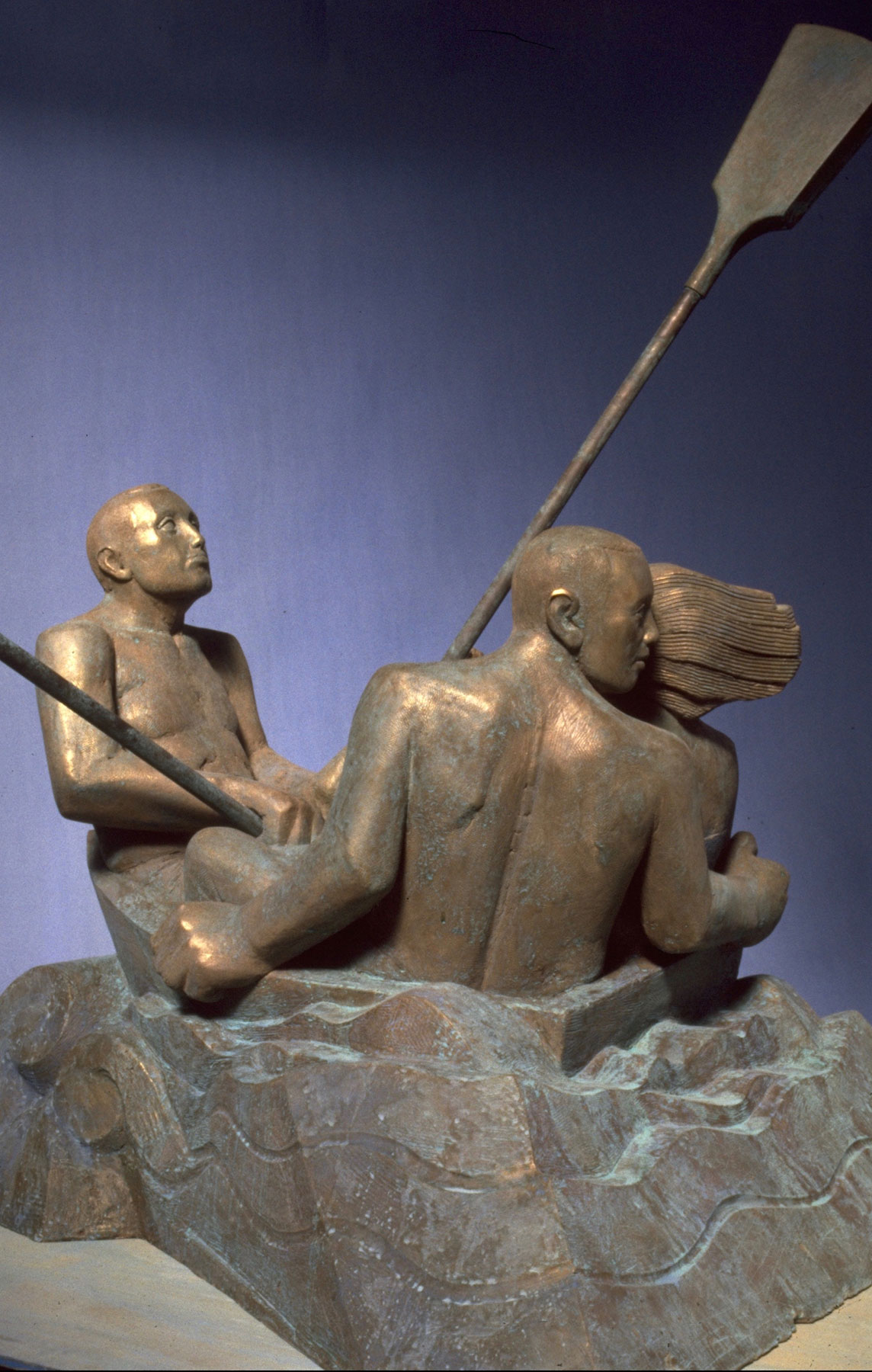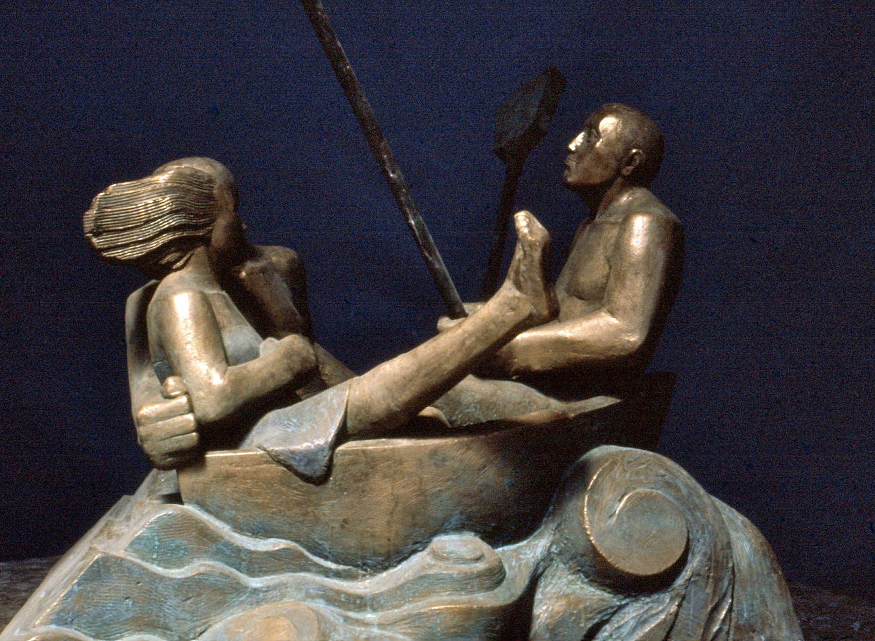 The Boating series could just be about people in boats, but the work has classical references, to the Boatman taking people along the river of life or the Ferryman who transports from this world to the next.
